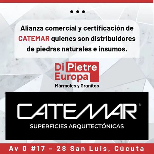 Somos una empresa cucuteña, con 20 años de experiencia en el sector de acabados en mármoles y granitos. Ofrecemos soluciones y servicios para construir y remodelar interiores y exteriores, presentando nuestro amplio y variado stock de productos en piedra natural con los mejores estándares de calidad ideales para sus proyectos de remodelación en su hogar, local comercial u oficina. Contamos con la alianza comercial y certificación de CATEMAR quienes son distribuidores de piedras naturales e insumos, con alcance nacional y proyección internacional. Somos distribuidores autorizados de las prestigiosas y elegantes marcas SILESTONE y DEKTON by Consentino.