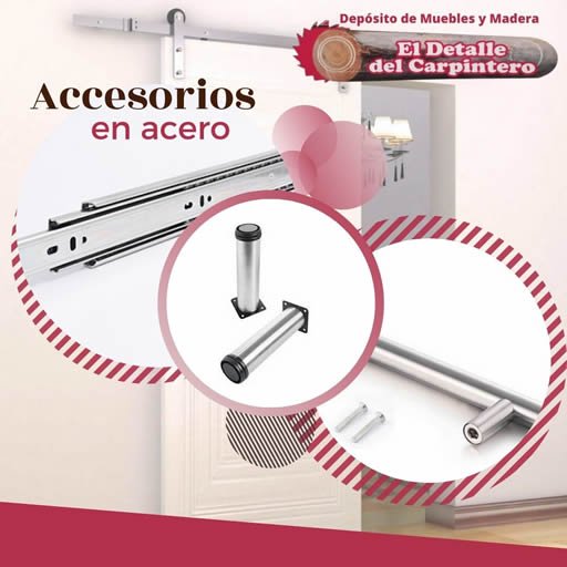 Vendemos todo tipo de madera para la construcción y carpintería. Accesorios para todo tipo de muebles de madera en acero inoxidable niveladores, rieles, soportes, manijas, topes metálicos, topes para puertas, loceros entre otros.