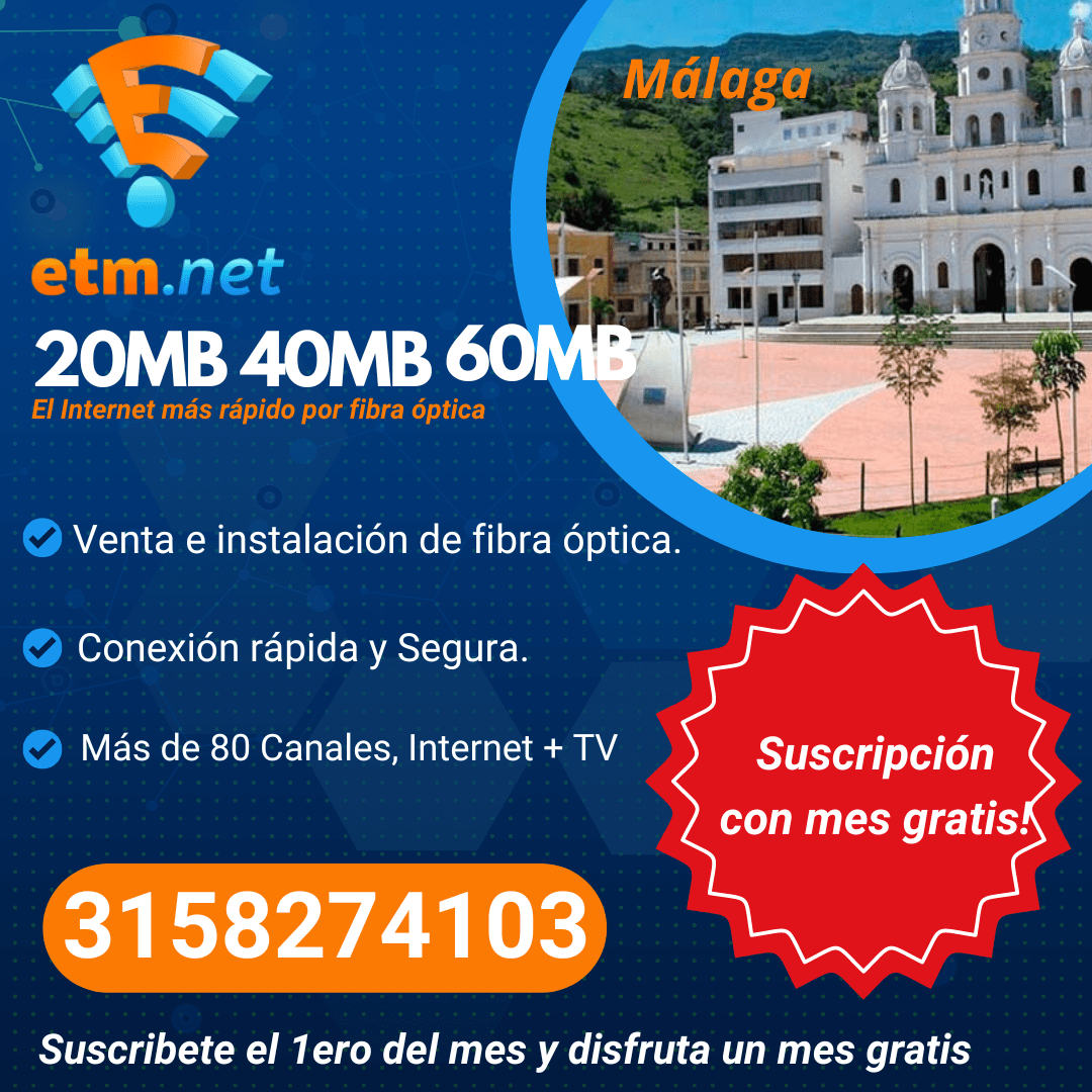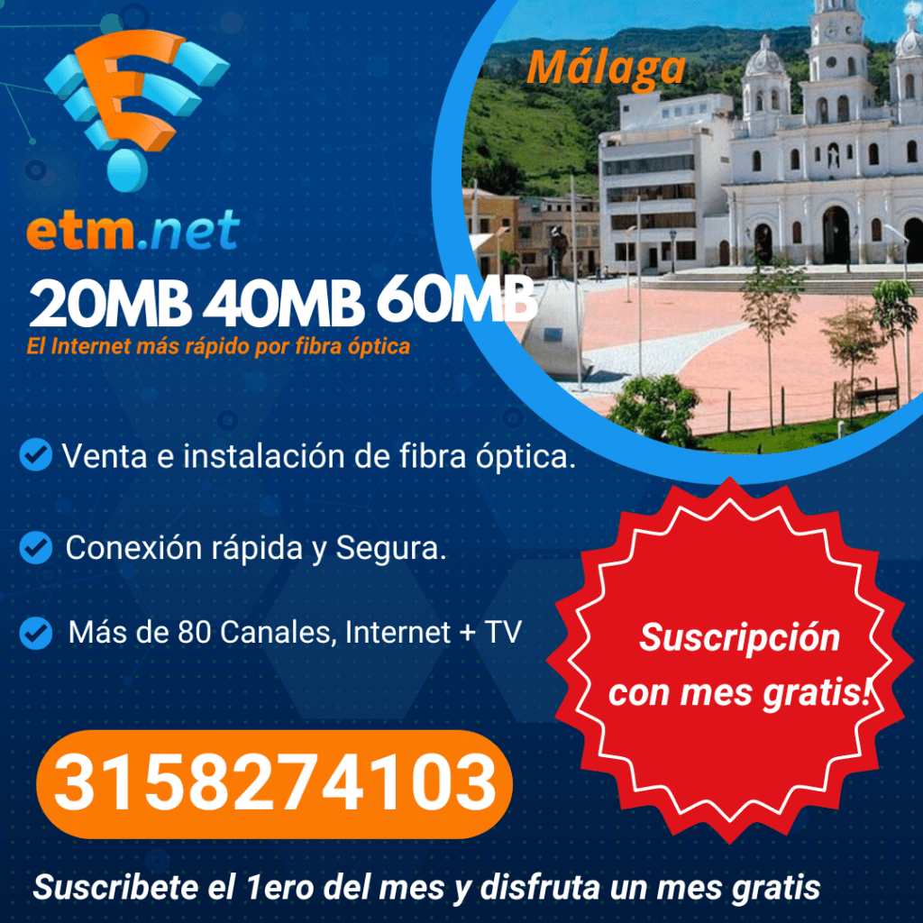 Horarios: Lunes a Viernes 08:00am a 12:00m 02:00pm a 06:00pm Sábados: 08:00am a 12:00m Domingo y Festivo No Laborables WhatsApp: +573158274103 Email: etm.net.soporte@gmail.com Dirección: Calle 14 # 8 – 36 Centro. Málaga. Santander. Colombia.