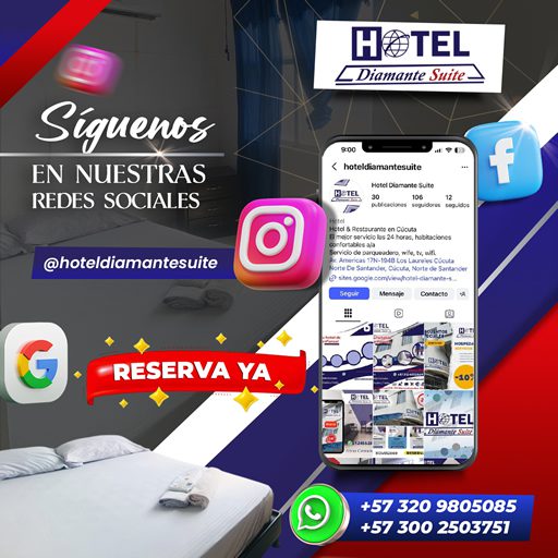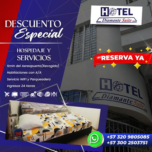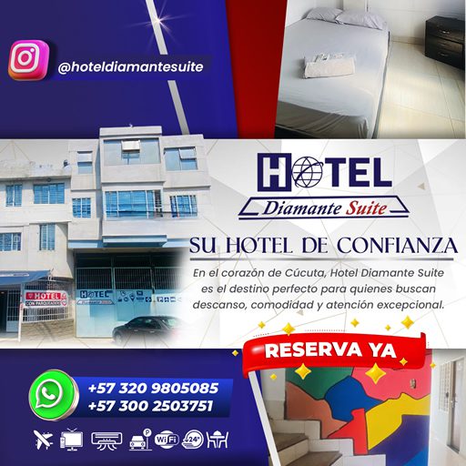 En el corazón de Cúcuta, Hotel Diamante Suite es el destino perfecto para quienes buscan descanso, comodidad y atención excepcional. Ubicado estratégicamente a tan sólo 3 minutos del aeropuerto, nuestro hotel combina la calidez familiar con servicios de calidad superior, creando una experiencia única para huéspedes de negocios, turismo y estadías prolongadas.