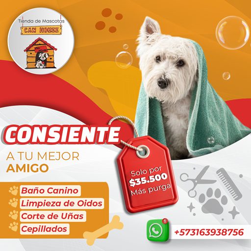 Promoción exclusiva para consentir a los amigos fieles de la casa, tenemos un Baño Canino con corte de uñas, cepillado, limpieza de oído y bucal dónde Obsequiamos PURGA Por tan sólo $35.000.