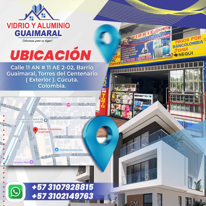 VIDRIOS Y ALUMINIOS GUAIMARAL Av 0 # 3N – 91 Barrio La Capellana. Cúcuta, Norte de Santander.